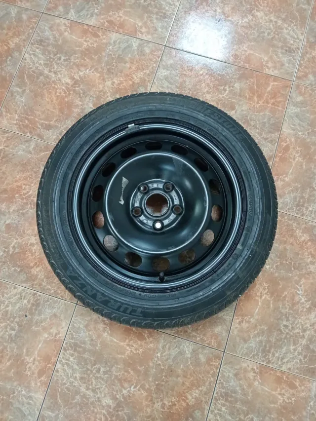 Llanta de acero de 16 pulgadas con neumático. - Medidas de la llanta: 6 1/2 x 16H2. - Compatible con grupo VAG.