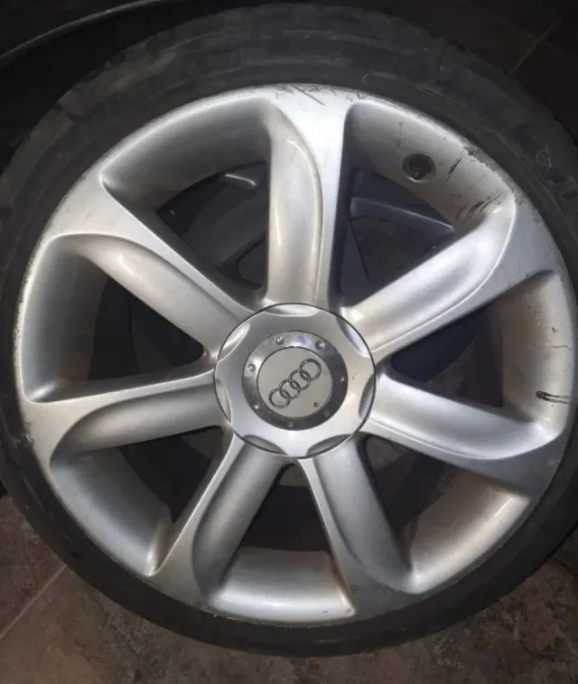 Detalles del productoLlanta de aleación Audi de 18 pulgadas con neumático incluido. Diseño deportivo de 7 radios.