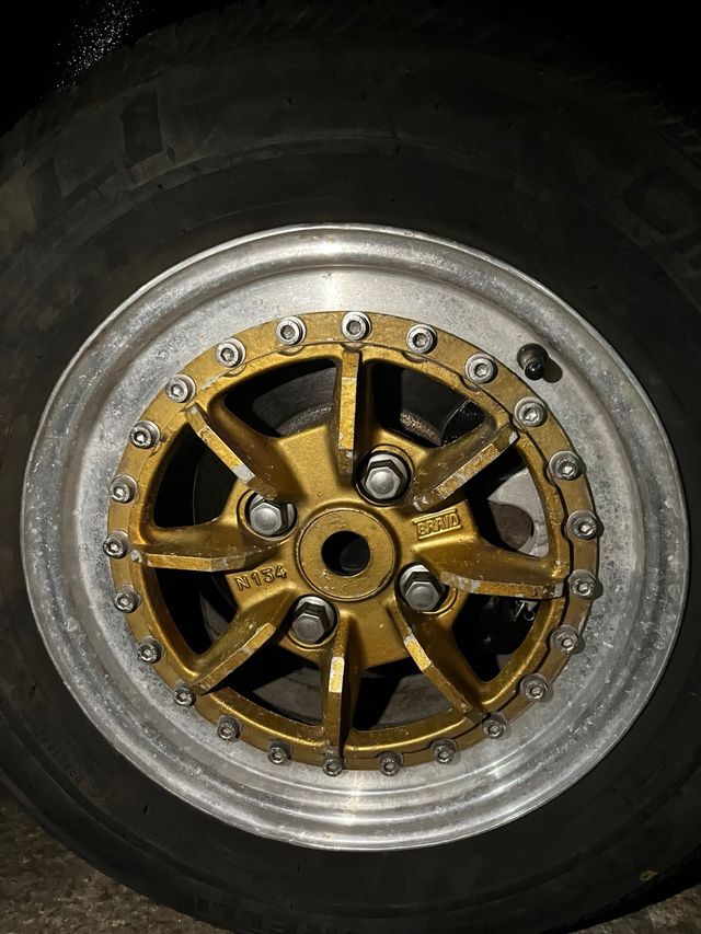 Detalles del producto4Llanta Braid de 13x6 pulgadas con acabado dorado y aro plateado. Diseño deportivo con múltiples radios y tornillería visible.(sin neumaticos)