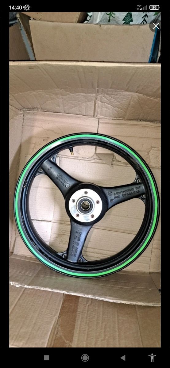 Vendo llanta delantera Kawasaki zx9 ,sin golpes , precio negociable , referencia F1385, lo verde es pegatina,se puede quitar