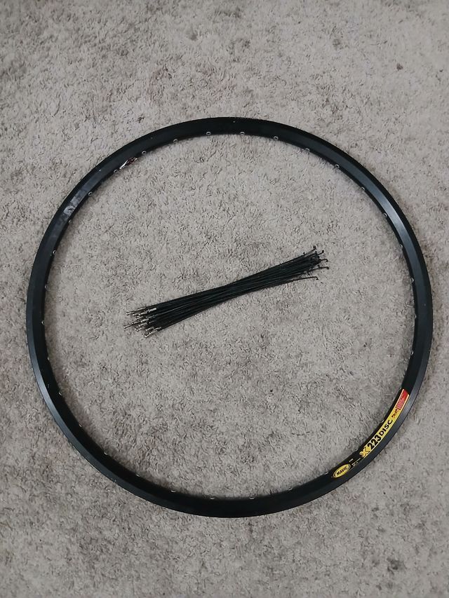 Aro Llanta Mavic de 26 pulgadas Aluminio, para disco, 32 agujeros, incluye los radios. - Llanta de color negro. - Diseño para frenos de disco.