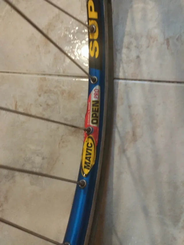 Detalles del productoLlanta de bicicleta Mavic Open Pro en color azul.llanta centrada y sin golpes en buen estado,buje cassette campagnolo 10 velocidades pegatinas un pelín levantadas ya que llevan tiempo sin usar
