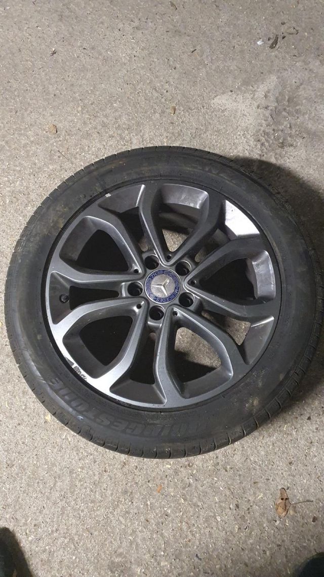 Viendo solo una llanta Mercedes en buen estado