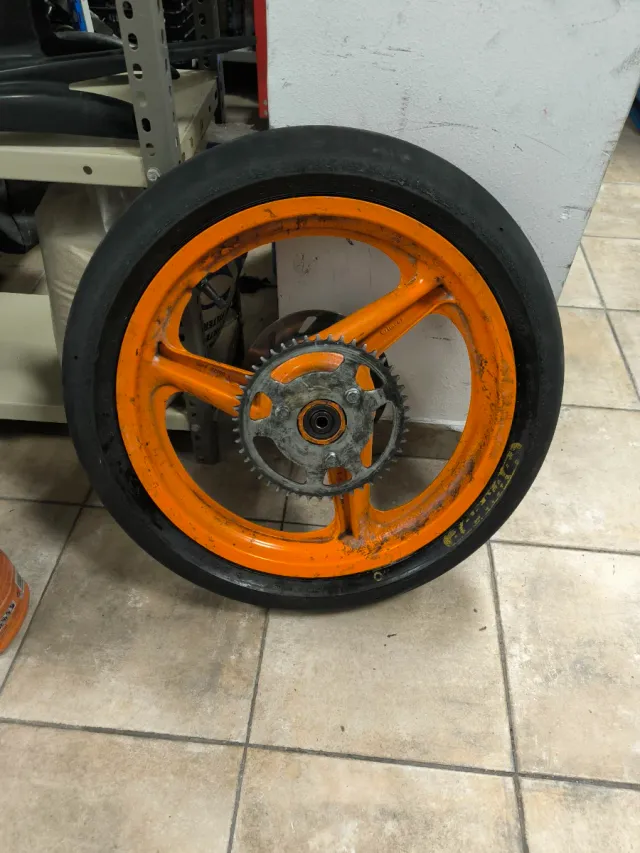 Detalles del productoLlanta delantera de Rieju RS2 Matrix en color naranja. Las manchas son suciedad solo, la llanta no esta rallada. Incliye Plato y Disco de Freno. Se entraga sin neumatico