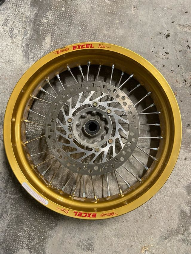 Detalles del productoLlanta de supermotard con aro dorado de la marca Takasago Excel.