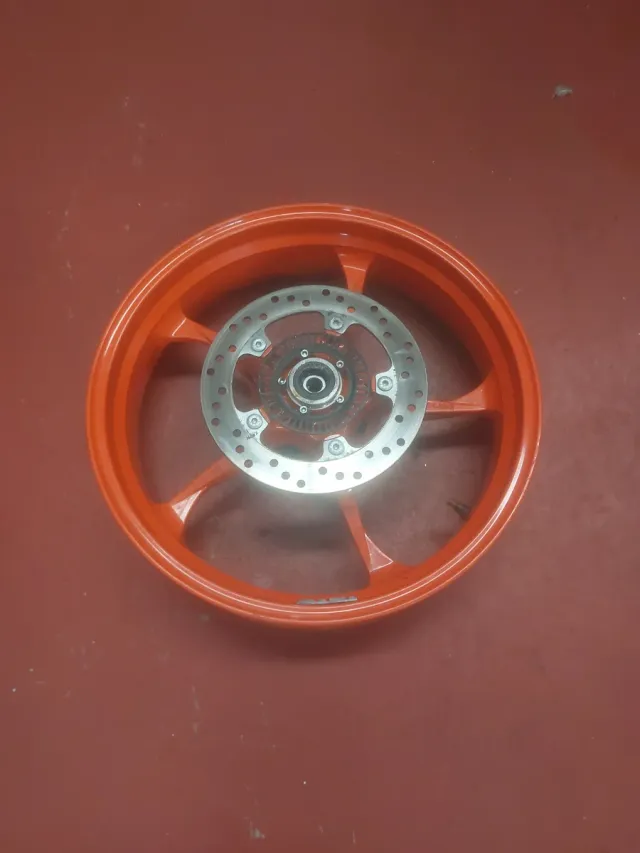 Llanta trasera de color naranja para KTM RC 125 ABS. Incluye disco de freno y placa abs