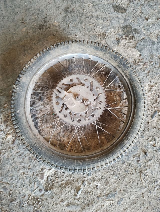 Vendo llanta trasera para Mobilette.Está usada, pero en buen estado. - Perfecta para reparar o restaurar tu moto. - Llanta de radios de metal. - Neumático gastado