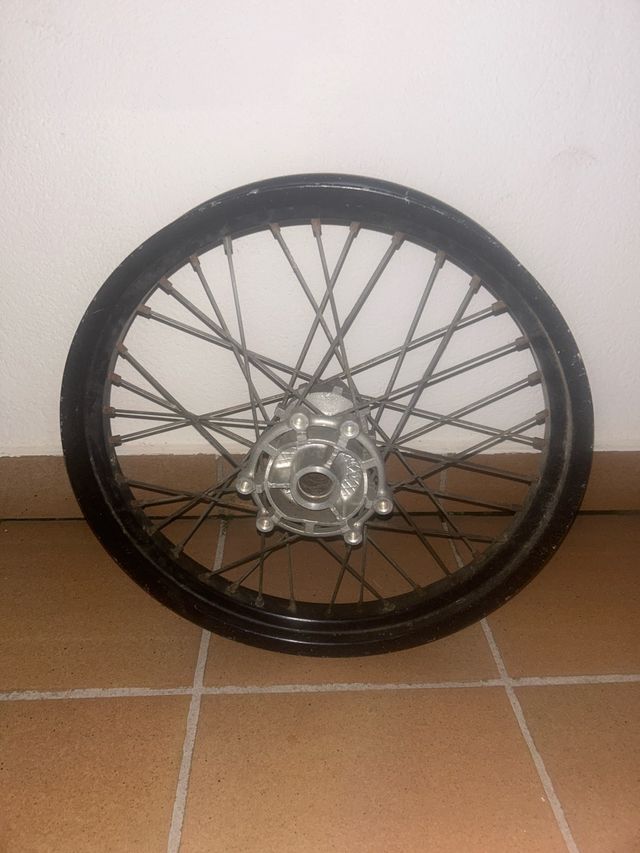 Detalles del productoSe vende llanta trasera original de moto cross para Derbi Senda, en buen estado estructural.