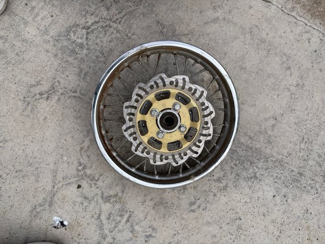 Llanta de pit bike con disco de freno incluido. Lista para instalar. - Llanta de radios. - Disco de freno con diseño. - Buje central.