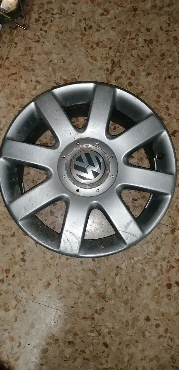Detalles del productoLlanta original volkvagen de aleación de aluminio, ideal para montar o de repuesto es de 16 pulgadas plateada con el logo de Volkswagen en el centro.