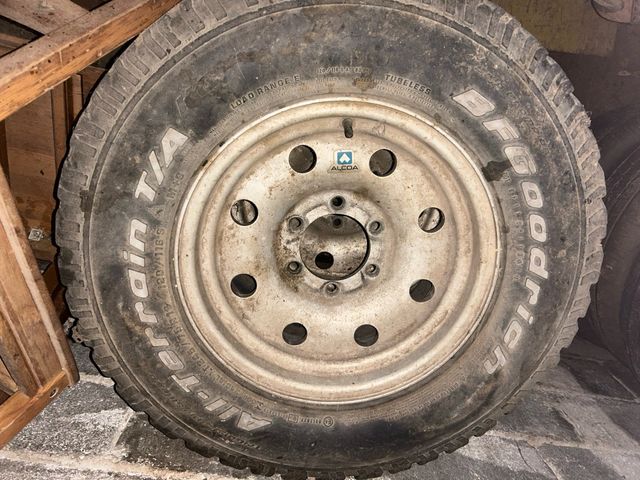 Llanta y neumático BFGoodrich All-Terrain en buen estado. - Medida: 245/75R16 120/116 S - Carga: Load Range E - Marca de la llanta: Alcoa