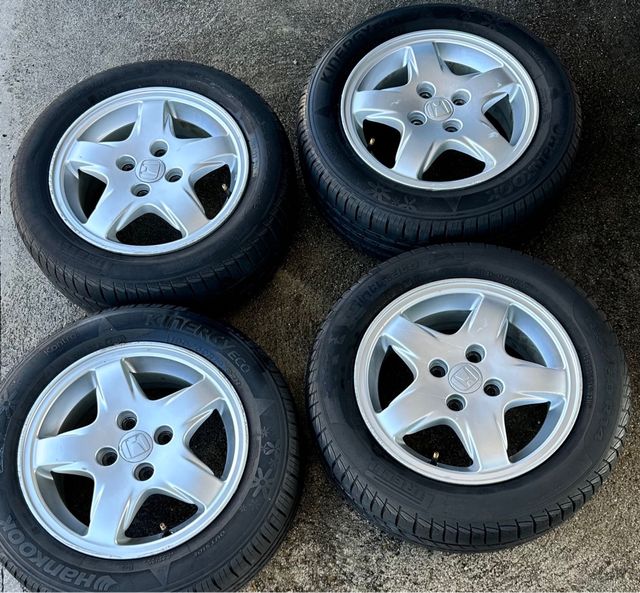 Detalles del productoJuego de 4 llantas de 14 pulgadas originales Honda Civic entre otras marcas con anclaje 4x100. Están en buen estado, neumáticos para reemplazar.