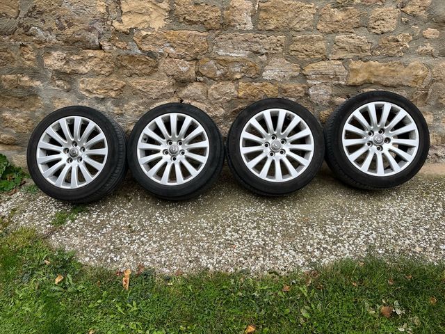 Juego de cuatro llantas de 18 pulgadas originales de Opel Insignia. - Neumaticos en los testigos. - Centro con logo. - Roces de uso.
