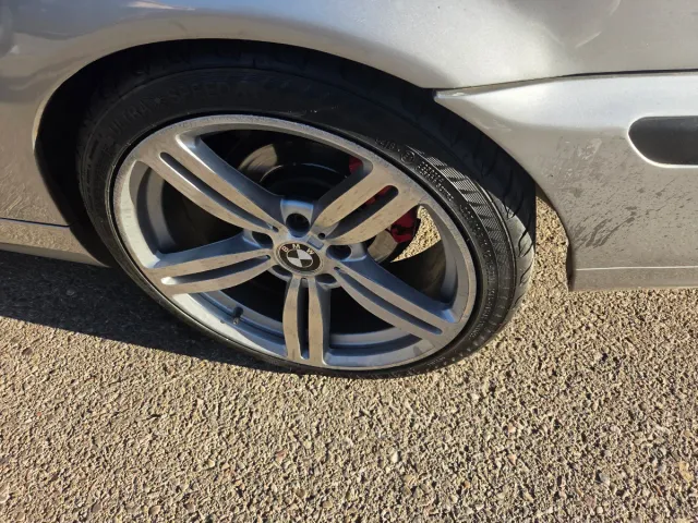 Llantas 18x8.5 5x120 bmw una llanta tiene fisura pero la llevo igual en el coche tiene una chapusa quedo bn es la primera foto BMW Serie 3 Sedan en Madrid