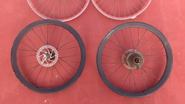 Juego de dos llantas de 26 pulgadas reforzadas, procedentes de MTB de descenso. Completas con sus discos, piña y palometas.