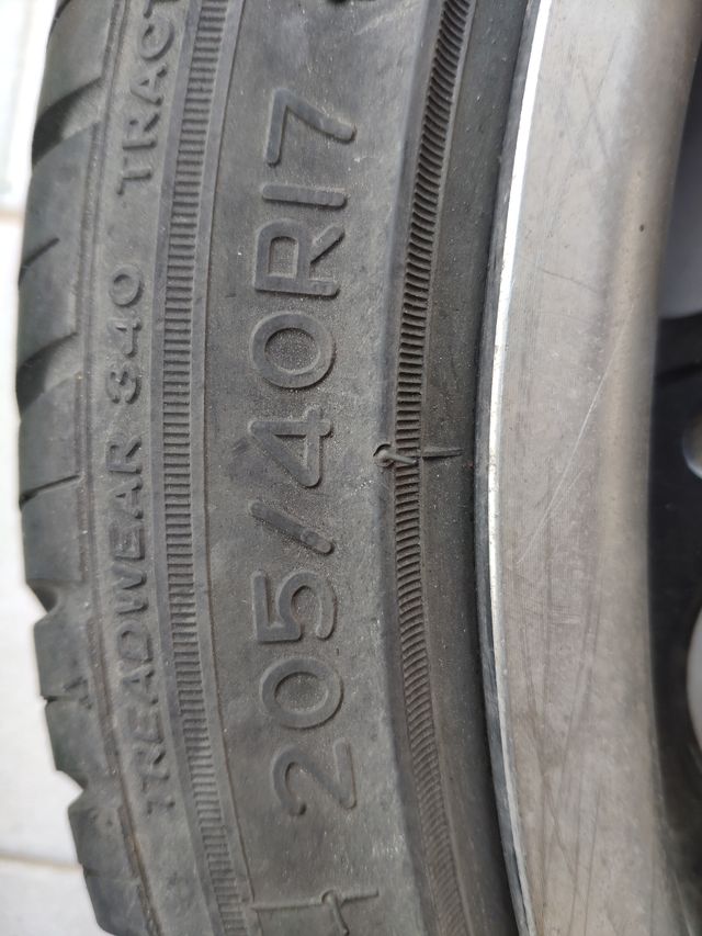4 llantas 4x108. Neumáticos de medida 205/40R17. - Diámetro de llanta de 17 pulgadas. - Índice de carga y velocidad visibles en la imagen.