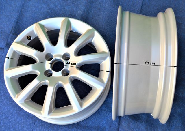 Se venden dos llantas de aluminio de 17 pulgadas. Están en buen estado y son de color plateado. - Diámetro de 44 cm. - Ancho de 19 cm.