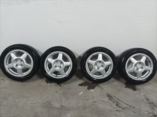 Detalles del productoaluminio LIGERO se venden llantas originales de Mazda rx3 son de 15" en 4 x100 6,5 x15 ET50,las gomas estan las delanteras al 80% y las traseras al 99% las medidas de watas son 185/55/15. estuvieron montadas como se puede ver en un clio.