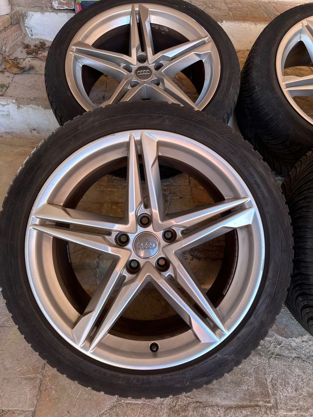 Detalles del productoJuego de 4 llantas originales Audi A5 de 18 pulgadas con neumáticos 245/40 R18 en buen estado cambiados en 2023.