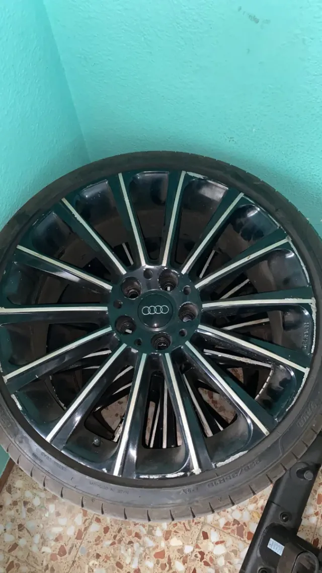Juego de llantas medida 235/35/19R. -Los neumáticos 50% menos 1 esta gastado - Diseño deportivo. - Acabado negro con detalles plateados .precio negociable