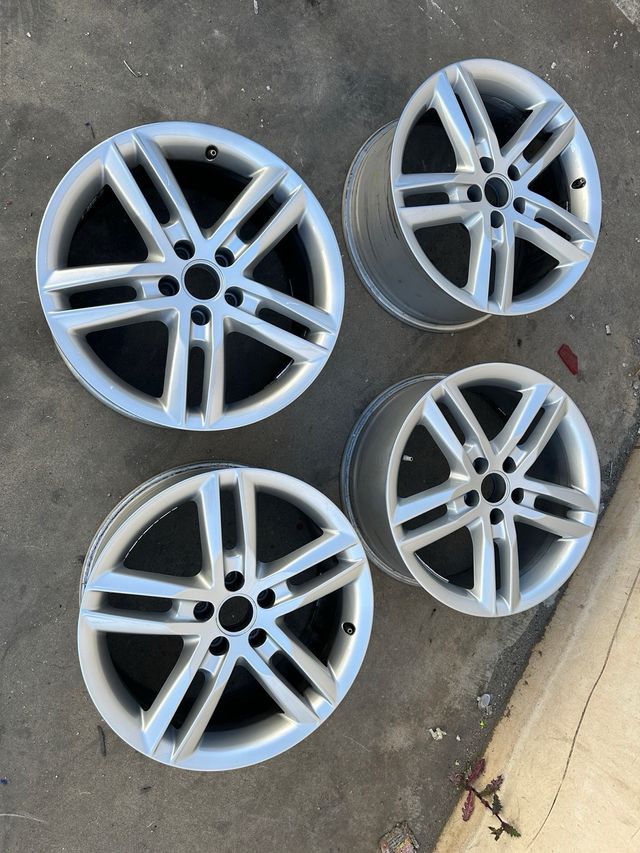 Detalles del productoSe venden llantas de audi originales en 18” con sus respectivos tapabujes,en tornilleria 5x112 y buje 66,5.