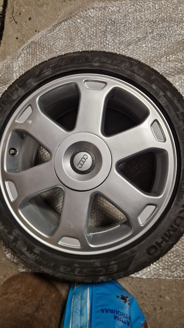Detalles del productoJuego de llantas originales Audi S4 Avus con neumáticos recién pintadas en servicio oficial de audi.