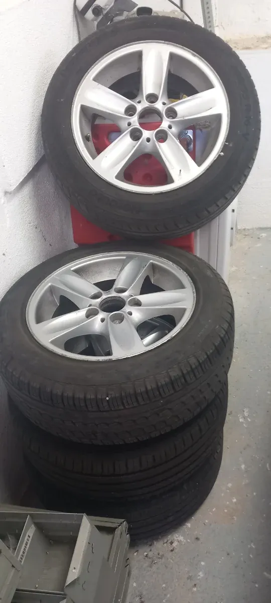 Juego de 4 llantas de aleación de 16 pulgadas, originales de BMW. Son válidas para otros modelos de coche. Neumaticos al 90%. - Diseño de 5 radios. - Acabado plateado.