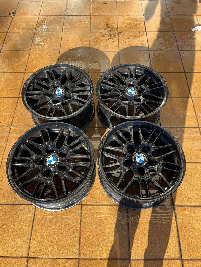 Juego de 4 llantas de aleación BMW de 16 pulgadas. - Diseño deportivo. - Acabado en negro brillante. - Logo BMW en el centro.