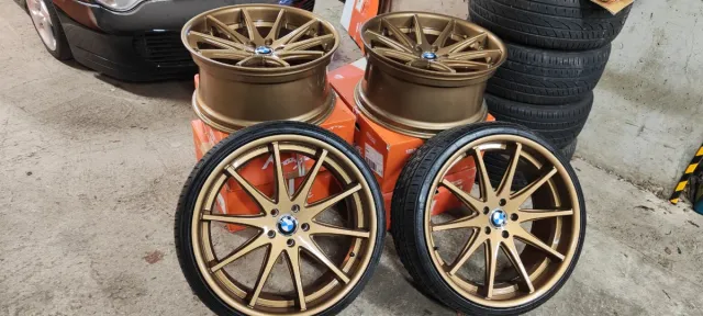 Detalles del productoJuego de llantas de aleación para BMW en acabado dorado. Llantas nuevas solo probadas en medidas 22X10'5 et 42traseras cóncavas