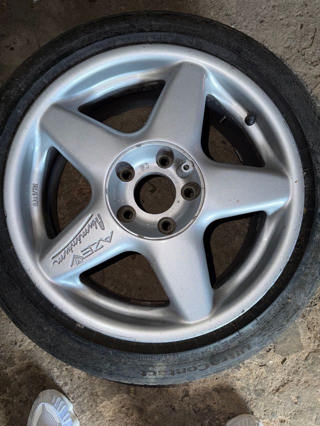 Juego de llantas de aluminio para BMW E36. - Diseño de 5 radios. - Marca AZev. - Acabado plateado.