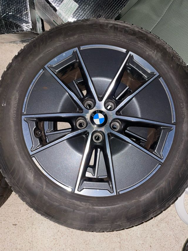 Juego de llantas BMW de 17 pulgadas. - Diseño deportivo de 5 radios dobles. - Acabado bicolor: gris oscuro y pulido. - Incluye tapa central con logo BMW. NO NEGOCIABLE