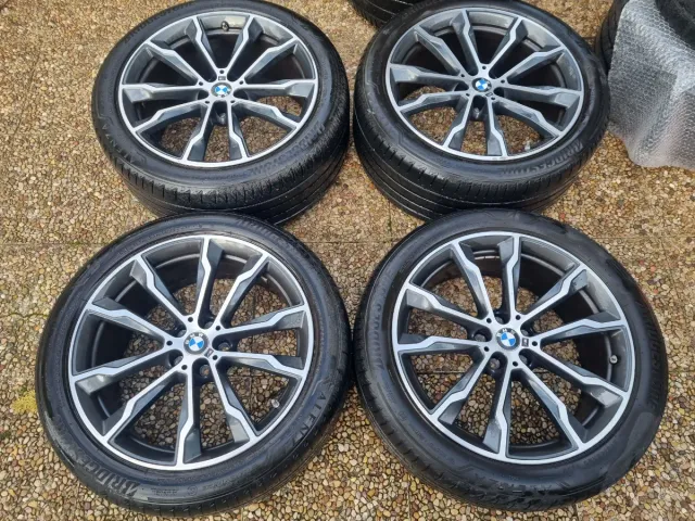 Detalles del productoJuego de llantas BMW X3 G01 X4 G02 20" [699M] ORIGINALES con referencias OEM 8010268 8010269 y neumáticos Bridgestone Alenza 001 245/45R20 103W al 40% de uso restante y 275/40R20 106W al 20% , sensores de presión incluidos.