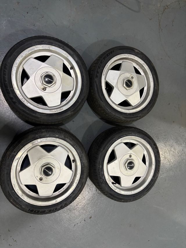 las llantas tienen marcas del uso, no estan dobladas ni pierden aire, acepto cambio por otras llantas en 4x100.
