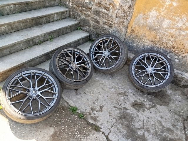 Detalles del productoJuego de dos llantas Butzi flow forged de 19 pulgadas con anclaje 5x120. Están con señales normales de uso. No están dobladas, soldadas ni nada raro. 2 neumáticos para cambiar y 2 a mitad de vida. Neumáticos khumo 235/35 91 Y.