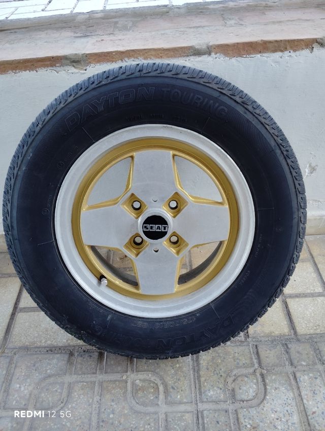 Llantas clásicas,anclaje 4x98, para Seat 124,1430,127,600 - Diseño deportivo con acabado dorado y plateado. - Neumático Dayton Touring incluido.