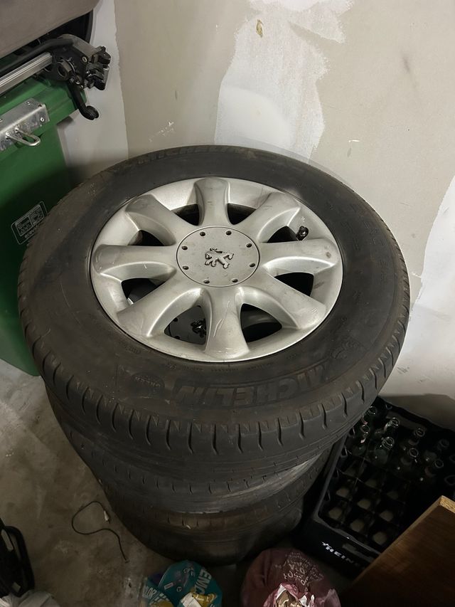 4 llantas de aleación plateada con cubierta Michelin. Distancia entre tornillos 5x98 mm Diámetro buje 58.1 mm No tonterías.