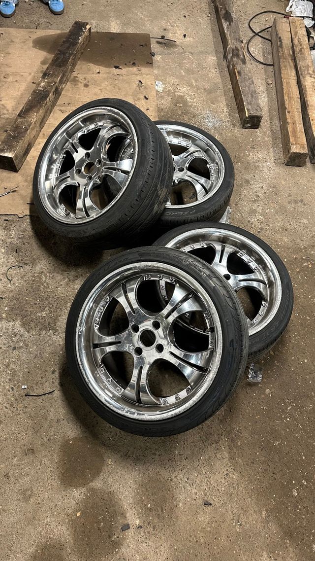 4 llantas Cesam Roadster 4x100 cromadas estilo Work Euroline S2 con 4 neumáticos 205/40/17 algo aprovechables 7,5 ancho ET35