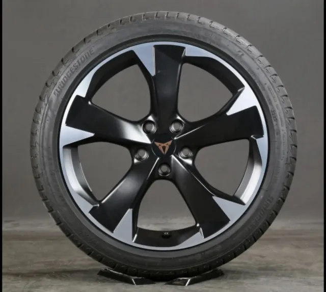 Juego de llantas originales de Cupra. - Diseño deportivo de 5 radios. - Acabado en negro mate con detalles en gris. - Incluye logo de Cupra en el centro.225/40/18