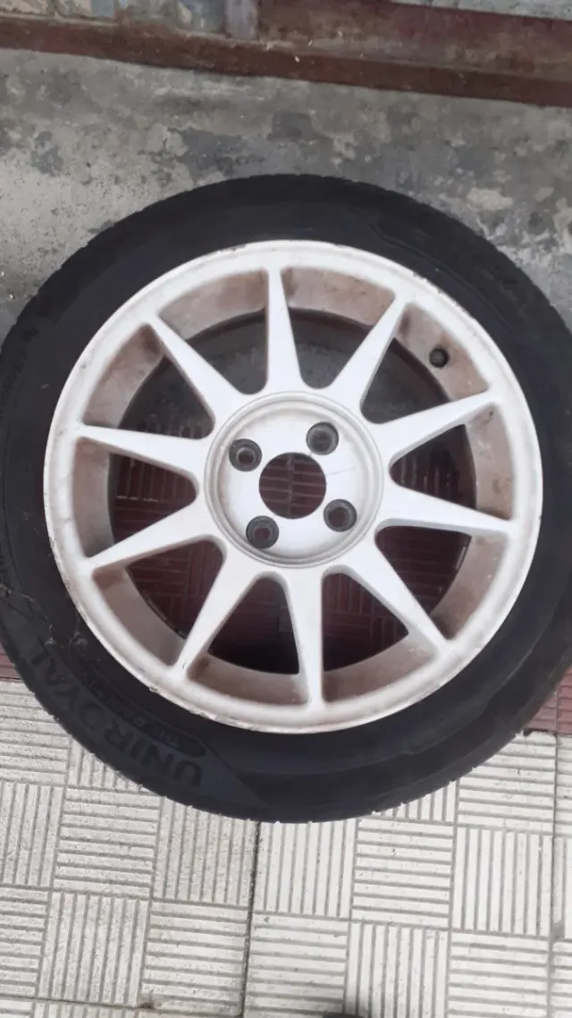 Juego de llantas de 15 pulgadas en color blanco. - Diseño deportivo de 10 radios. - Incluye neumáticos Uniroyal.