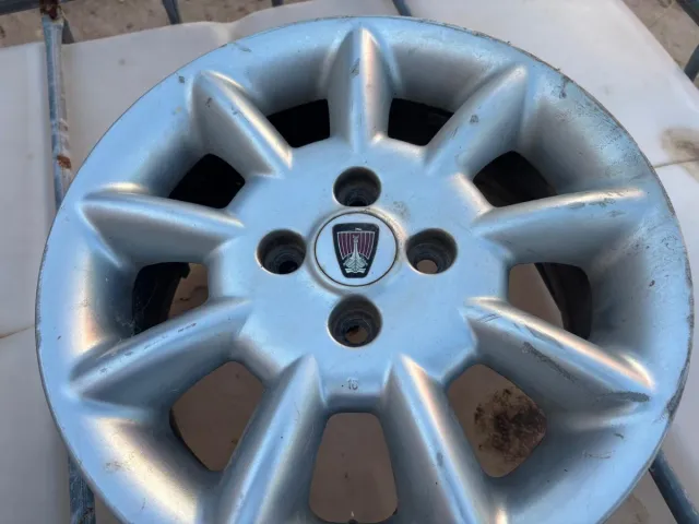 Detalles del productoJuego de 4 llantas de aluminio para coche Rover del año 2001. El diseño es de 5 radios y cuentan con el logo de la marca en el centro.