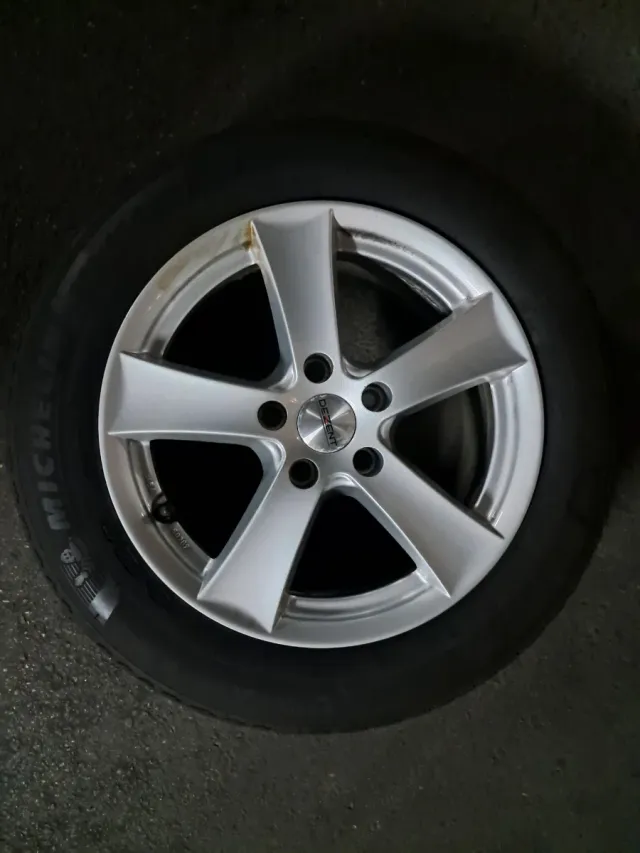 Juego de llantas de aluminio para Volkswagen. Audio. Seat. Skoda. - Diseño de 5 radios. - Acabado plateado. Los neumáticos están en mal estado