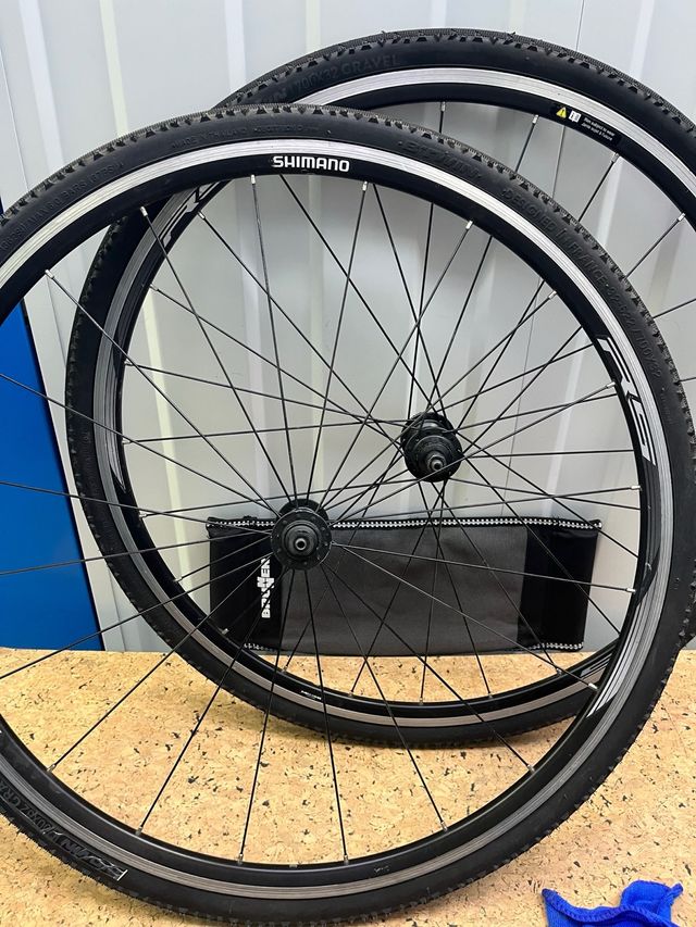 Juego de llantas para bicicleta, listas para gravel. - Marca: Shimano - Tamaño: 700x32 - Diseño para gravel no lleva cámara