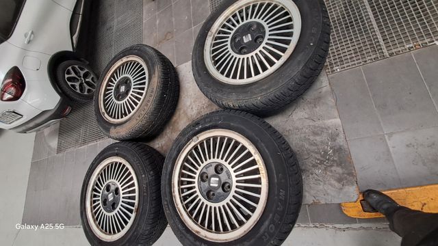 Juego de 4 llantas de aleación de 14 pulgadas para SEAT. - Diseño multirradio. - Centro con logo SEAT. - Incluye neumáticos 165/65 R14T.