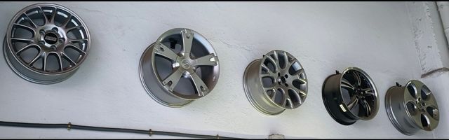 Detalles del productoConjunto de llantas ideales para decoración de talleres o locales mecánicos. Cinco llantas aluminio nuevas. Con soporte de pared. Ideal decoracion talleres equipos competición. No envío. Venta en presencial Madrid. Zona cuatro Caminos.