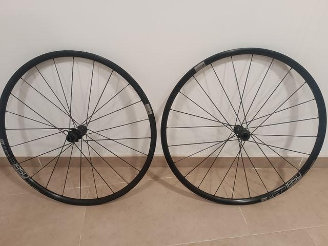 Detalles del productoLlantas DT swiss para bicicleta de carretera o gravel, la delantera está en buen estado, la trasera tiene alguna fisura entre los radios,Ver fotos, pero sirve para hacer rodillo y el núcleo Shimano 11v está en buen estado.