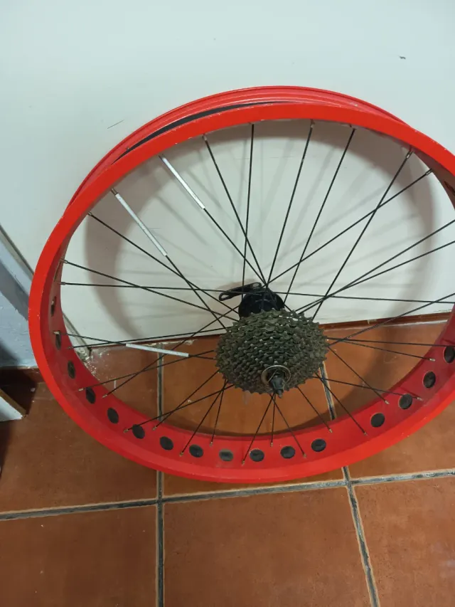 Juego de llantas para bicicleta Fat Bike en color rojo. - Incluye piñonera de 9 velocidades.