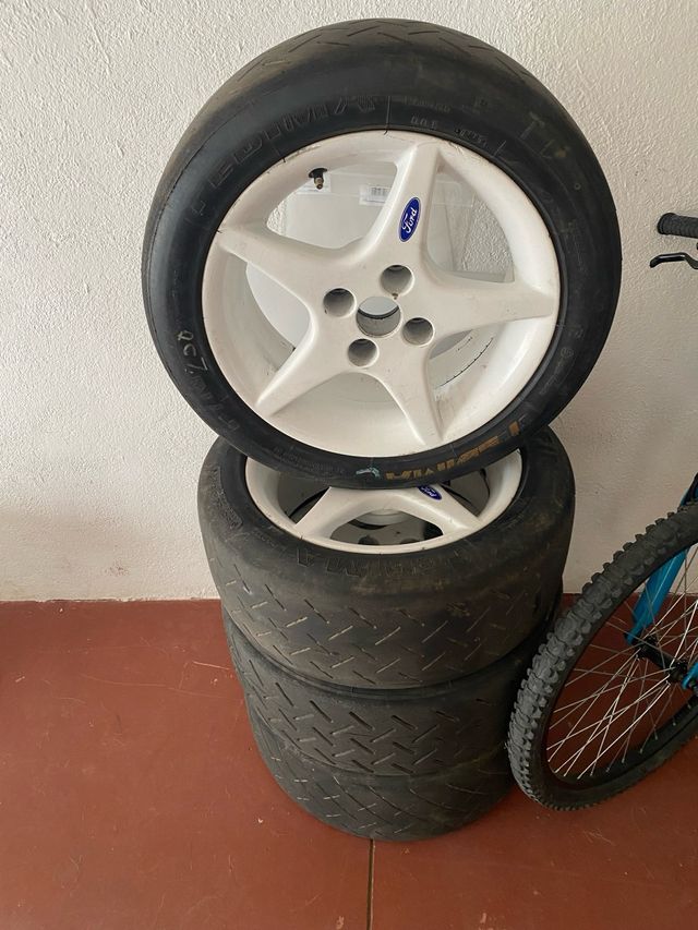 Detalles del productoJuego de llantas Ford de 15 pulgadas con gomas Fedima 195/50 15 de rallye, montadas en un Focus del 99/00