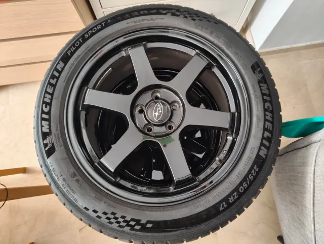 Detalles del productoLlanta Fox PF1 de 17 pulgadas con un offset ET35 y tornilleria 5x100. Neumáticos Michelin pilot sport 5 225/50 R17 98 Y, tanto las llantas como los neumáticos tienen unos 10.000km de uso como mucho. Se venden por separado (precio por uniad), llanta 4 de 4.