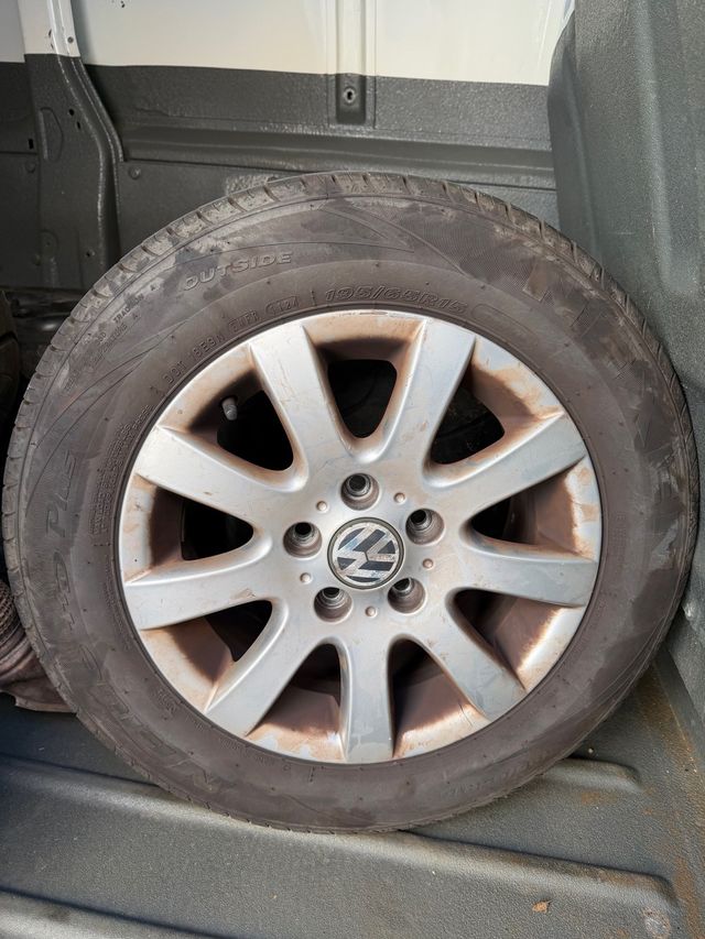 Juego de llantas de aleación para Volkswagen Golf 5. - Diseño de 10 radios. - Logo de Volkswagen en el centro. - Medida 195/65R15. vendo 4 llantas con neumaticos como nuevos