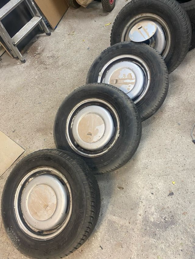 Detalles del productollantas 4x100 golf mk2 en buen estado, 2 neumaticos de invierno nuevos los otros dos nuevos tambien pero normales. Se cambian tambien por 5x100. Se venden por cambir a 5x100. Tengo todos los plasticos perfectos y en buen estado.